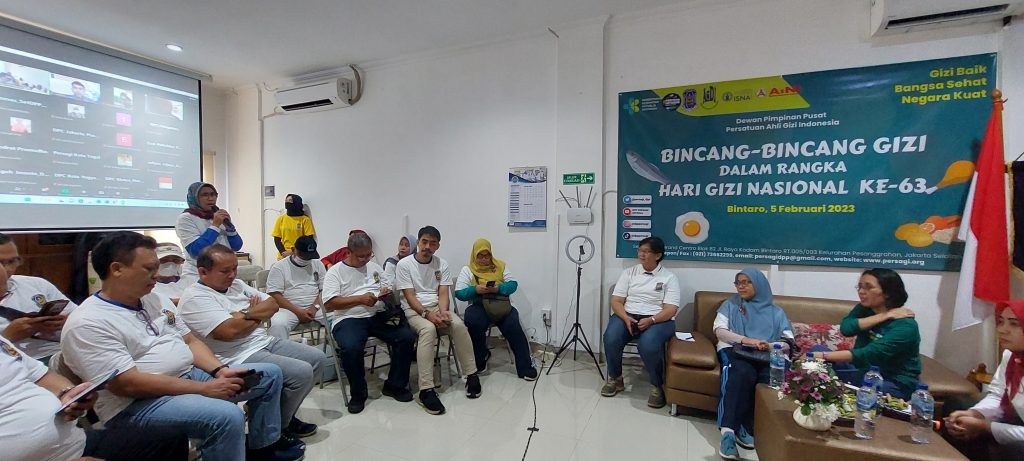 Dalam memperingati Hari Gizi Nasional ke-63, PERSAGI mengadakan beberapa rangkaian kegiatan yang mana puncaknya diadakan di Hari Minggu, 5 Februari 2023. Secara paralel Bincang-bincang Gizi yang dihadiri Ibu Dirjen Kesehatan Masyarakat, Ibu Plt Direktur Gizi dan KIA, dan Bapak Direktur Peningkatan Mutu Tenaga Kesehatan, Ir. Doddy Izwardy sebagai narasumber. Bersama dengan Ibu Ketua Umum DPP PERSAGI, Ibu Rudatin, SSt.MK, SKM, MSi dan Sekretaris Jenderal DPP PERSAGI, Sugeng Eko Irianto MPS, Ph.D. Kegiatan ini dimoderatori oleh Ibu Dyah Yuniar Setiawati, MPS dan dilaksanakan secara Hybrid (Daring dan Luring).