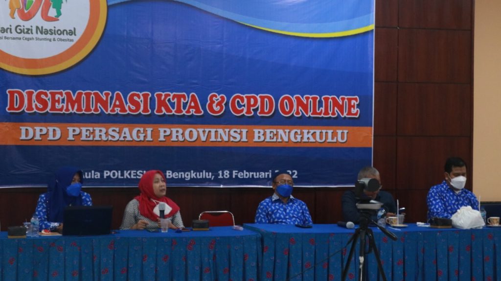 Rangkaian kegiatan HGN di Provinsi Bengkulu juga mengadakan diseminasi KTA dan CPD Online yang disampaikan oleh narasumber yaitu Dr. Syarif Darmawan, SST., M.Kes., dan Mohammad Furqan, SKM.,MKM. kepada peserta yang belum memiliki KTA dan yang sudah memiliki KTA dengan tujuan memberikan informasi kepada peserta baik secara daring maupun luring terkait kesadaran untuk menjadi anggota Persagi dilingkungan DPC PERSAGI melalui tahapan yang dipaparkan oleh narasumber serta diharapkan peserta dapat memanfaatkan system CPD online yang tersedia dalam mengisi Portofolio secara benar sebagai Nutrisionis dan Dietisien.