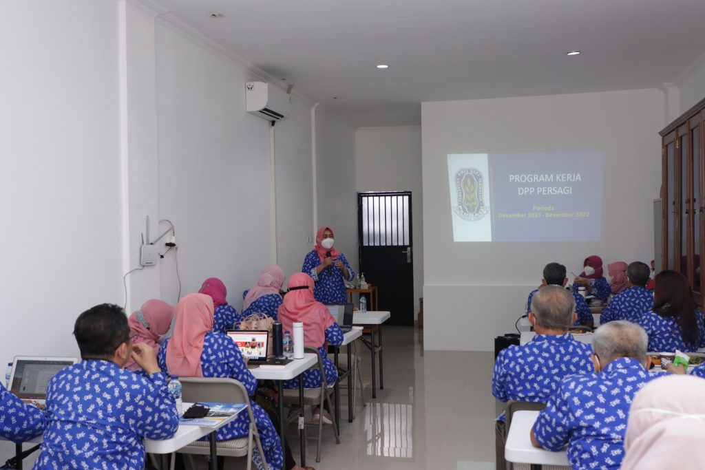 Sabtu, 8 Januari 2022, telah dilaksanakan Rapat Kerja DPP PERSAGI dengan agenda membahas rencana program kerja DPP PERSAGI tahun 2022. Kegiatan ini dilaksanakan di kantor DPP PERSAGI yang beralamat di Jalan Raya Kodam Bintaro No.5, Pesanggrahan, Jakarta Selatan, dan dihadiri oleh 32 orang peserta yang terdiri atas pengurus, ketua bidang, dan ketua departemen DPP PERSAGI periode 2020-2024. Seluruh peserta yang hadir diwajibkan menjalankan protokol kesehatan dengan melakukan pengecekan suhu dan Swab Antigen oleh petugas sebelum masuk ke area kegiatan.