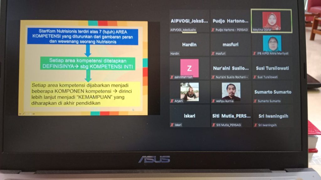 Pada hari Kamis, tanggal 27 Januari 2022 telah dilaksanakan workshop oleh DPP Persatuan Ahli Gizi (PERSAGI) bersama dengan Kolegium Ilmu Gizi Indonesia (KIGI), Asosiasi Institusi Pendidikan Tinggi Gizi Indonesia (AIPGI), dan Asosiasi Institusi Pendidikan Tinggi Vokasi Gizi Indonesia (AIPVOGI). Workshop ini membahas tentang Blueprint untuk Uji Kompetensi Gizi di berbagai strata pendidikan. Pelaksanaan workshop dilakukan secara Luring di Politeknik Kesehatan Kementerian Kesehatan Jakarta II, Jalan Hang Jebat III/F3, Kebayoran Baru, Jakarta Selatan dan secara Daring melalui zoom.